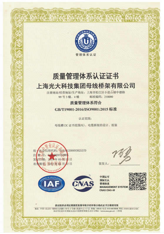 上海光大科技集團母線橋架有限公司主要生產高低壓密集型線槽,耐火母線槽,防火型母線槽,槽式橋架,梯式橋架,大跨距橋架,抗震支架,成品支架等系列產品,全面通過了ISO9001質量體系認證和CCC國家強制性生產認證,光大集團,形成一套基于設計制造及售前,售中售后為一體的經營管理模式!